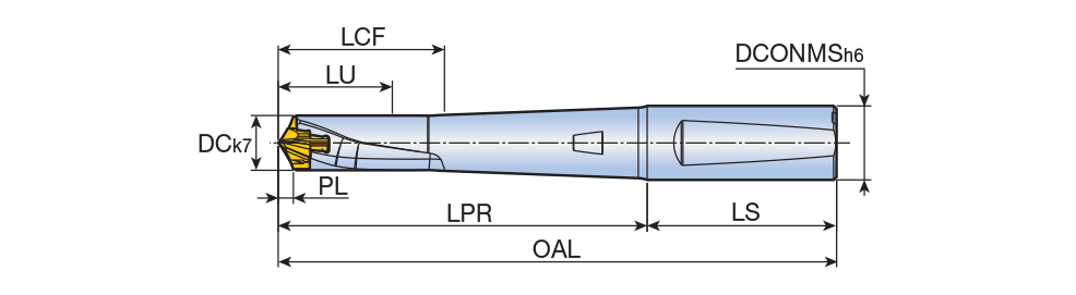 DRILLRUSH head-changeable drill holders with weldon shank (5xD) structural steel