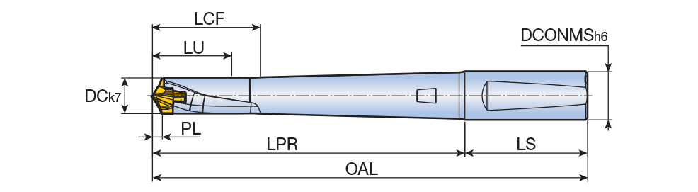 DRILLRUSH head-changeable drill holders with weldon shank (7xD) structural steel