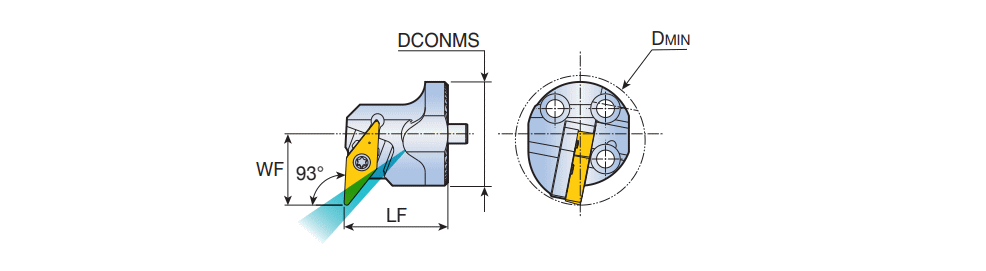Exchangeable screw type boring heads with 35° VBMT 1604.. inserts & 93° approach angle for anti-vibration deep boring