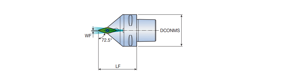 C-ADAPTER Screw type holders with 72.5° approach angle for positive 35° Rhombic inserts of 5° clearance angle