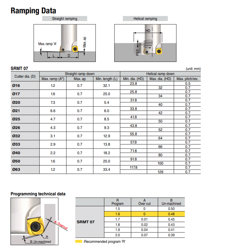 : High-feed modular end mills with SRMT 07 inserts and T-FLEXTEC adaptation