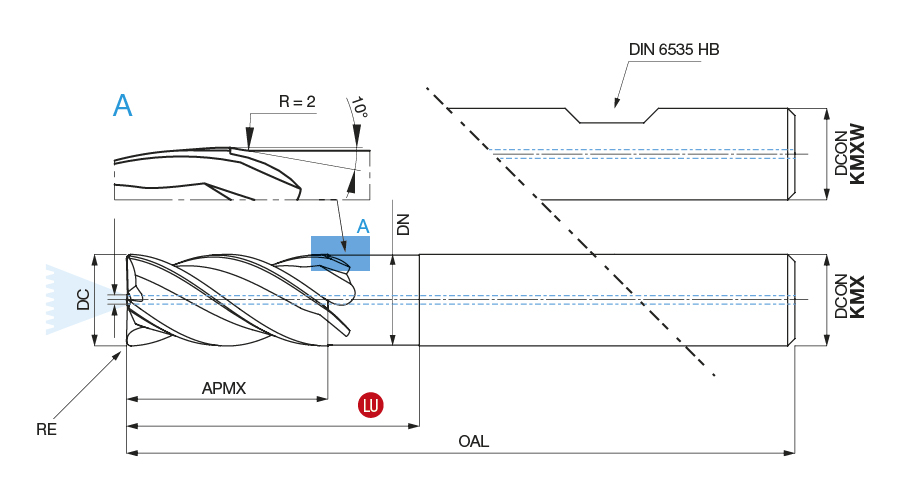 Internal Coolant for:temperature control in the cutting area Optimal Chip Evacuation Slotting up to 1,5DC