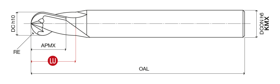 Two flute ball-nosed end mills