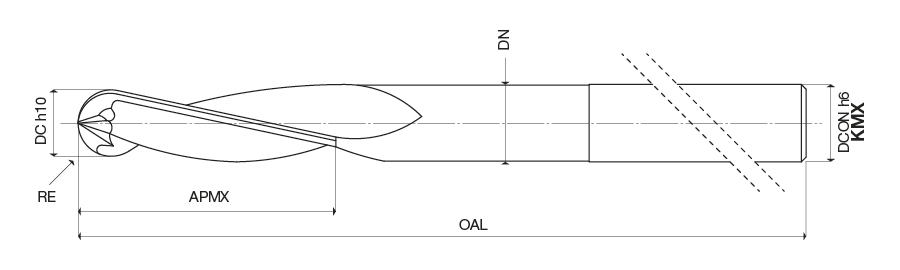 Two flute ball-nosed end mills