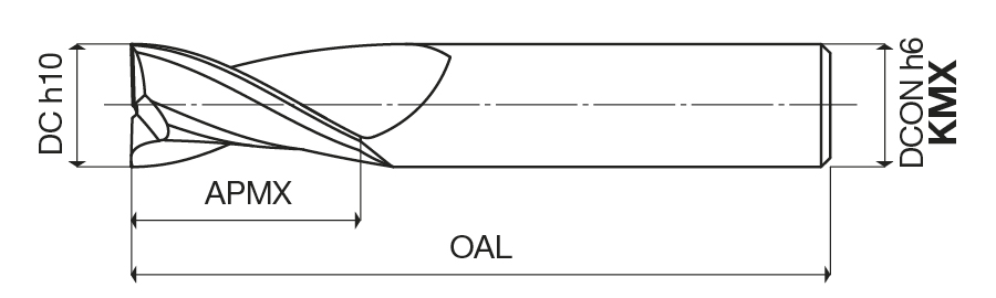 Two flute end mills. Polished flutes
