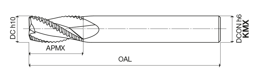 Roughing end mills. Polished flutes