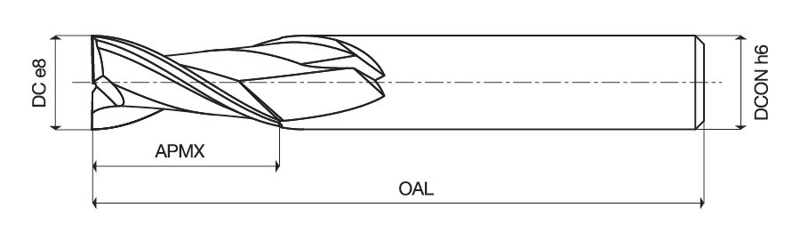 Two flute slot drills in tolerance e8