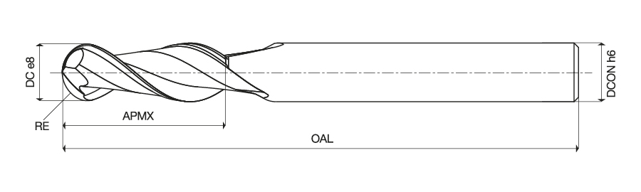 Ball nosed two flute slot drills