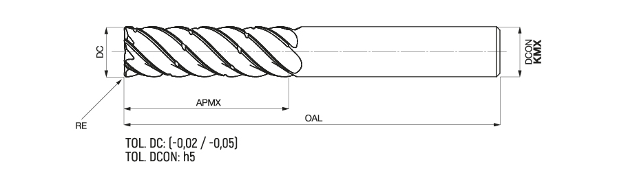 Maximum axial depth of cut. Axial Width of cut up to 3DC