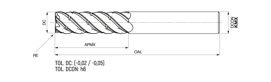 Maximum axial depth of cut. Axial Width of cut up to 4DC