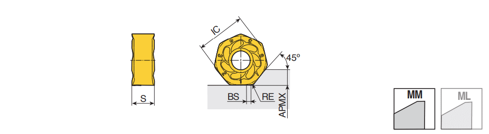 Ground double-sided inserts of economical 14 cutting edges with optimized geometry for cast iron of max. depth of cut 3.5 mm