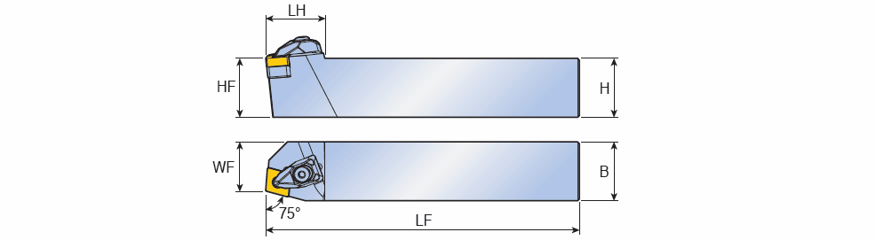 RHINOTURN T-holders with 75° approach angle for CN.. 0904 inserts using 100° corner