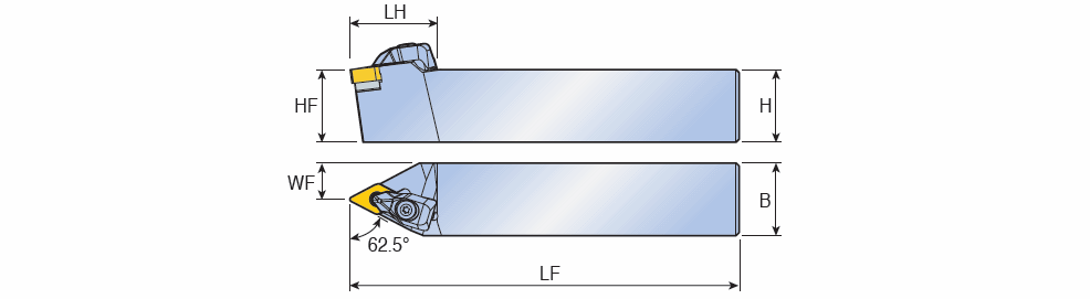 RHINOTURN T-holders with 62.5° approach angle for DN.. 1305 inserts