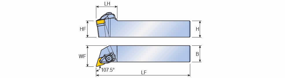RHINOTURN T-holders with 107.5° approach angle for DN.. 1305 inserts