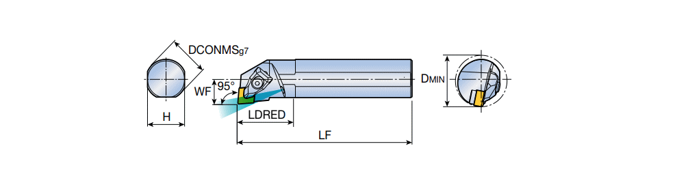 T-holder RHINOTURN boring bars for CN.. 0904 inserts with coolant and 95° approach angle