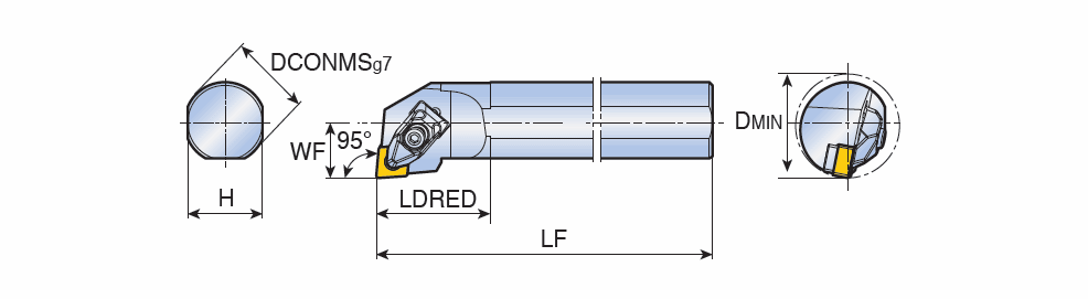 T-holder RHINOTURN boring bars for CN.. 0904 inserts with 95° approach angle