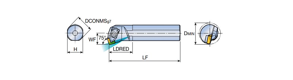 T-holder RHINOTURN boring bars with coolant & 75° approach angle for SN.. 0904 inserts