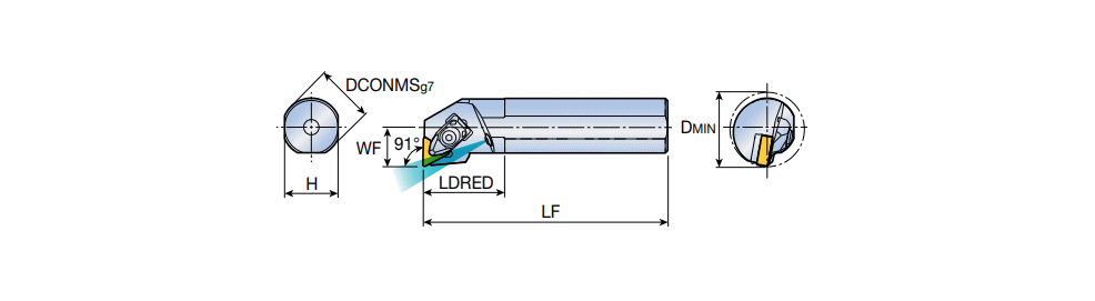 T-holder RHINOTURN boring bars for TN.. 1304 inserts with coolant and 91° approach angle