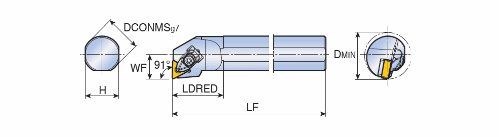 T-holder RHINOTURN boring bars for TN.. 1304 inserts with 91° approach angle