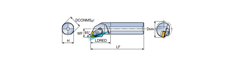 T-holder RHINOTURN boring bars with coolant & 95° approach angle for WNMX 0604 inserts