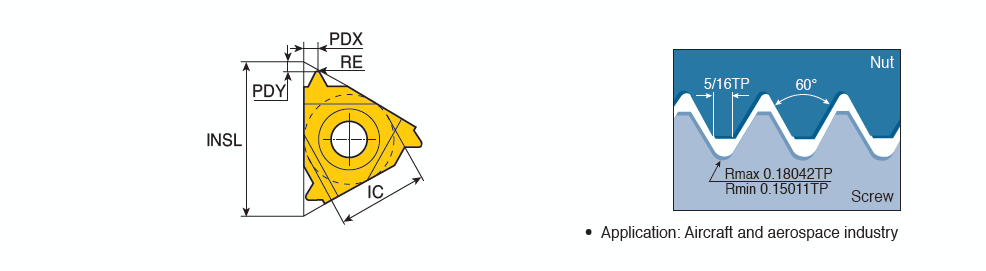 External MJ ISO 5855 metric full profile threading inserts for aviation and aerospace industry
