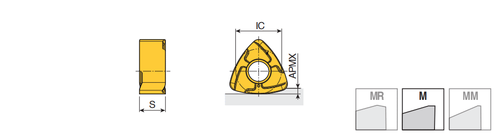 Double-sided inserts of reinforced 6 cutting edges for high feed milling of general applications in max. ap 2.0 mm
