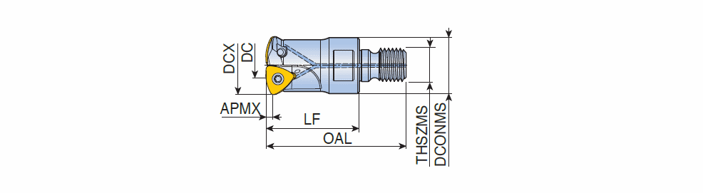 High feed end mills with BLMP 13 inserts of 6 cutting edges and T-FLEXTEC modular adaptations in max. Ap 2.0 mm