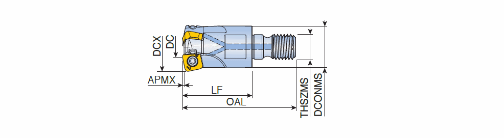 High feed end mills with T-FLEXTEC modular adaptation and positive SBMT 13 of 4 cutting edges in max. ap 2.0 mm