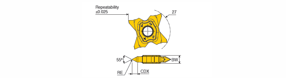 Inserts with 4 cutting edge for Partial profile 55° of external threading