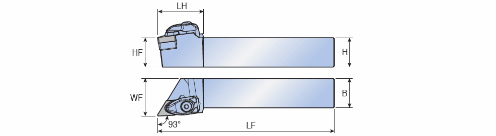 T-holder with 93° approach angle for negative 55° Rhombic ISO type Ceramic inserts without hole