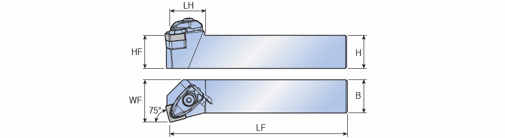T-holders facing with 75° approach angle for negative Square ISO type Ceramic inserts without hole