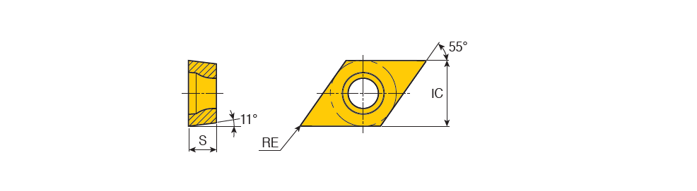 Precision positive ground 55° Rhombic inserts with sharp high rake cutting edge for small parts super finishing of steel, stainless steels & alloy steel