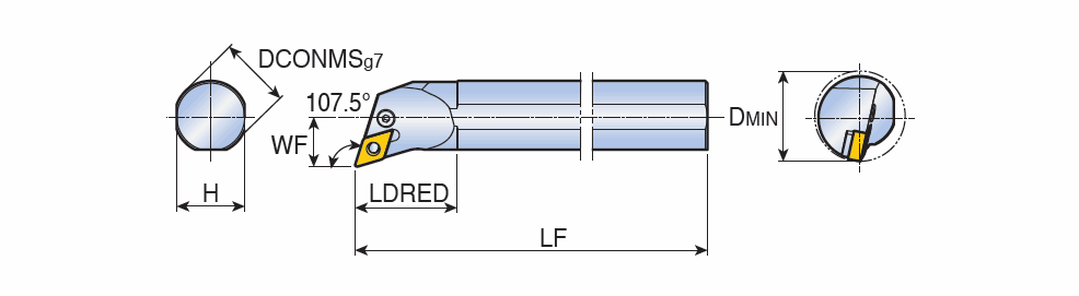Hook lever RHINOTURN boring bars for DN.. 1305 inserts with 107.5° approach angle