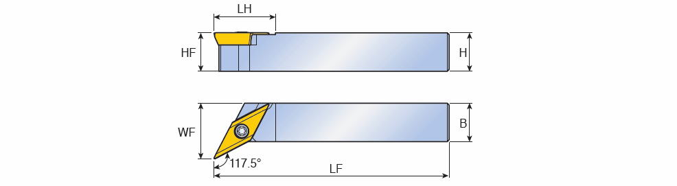 Screw type holders with 117.5° approach angle for positive 35° Rhombic insert of 11° clearance angle
