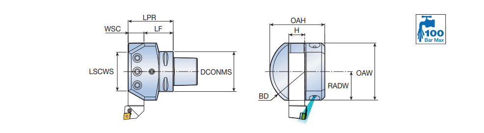 Perpendicular holders with C-ADAPTER shanks for external square-shank tools.