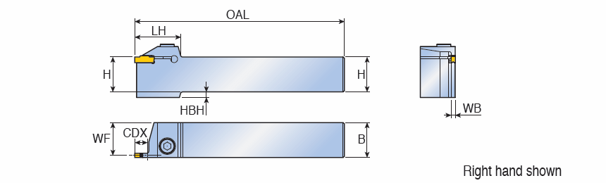 RHINOGROOVE external holders for parting of small dia. solid bar and shallow grooving