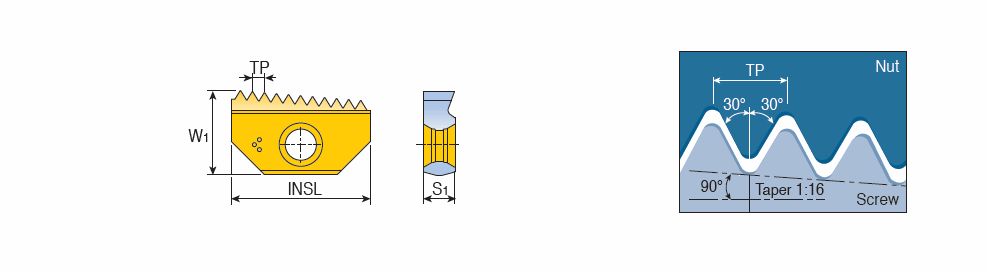 External and internal NPT full profile thread milling inserts for steam, gas and water pipes