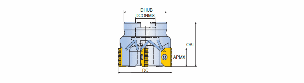 Indexable multi-insert shell mills for large diameter threading of intenal or external ones