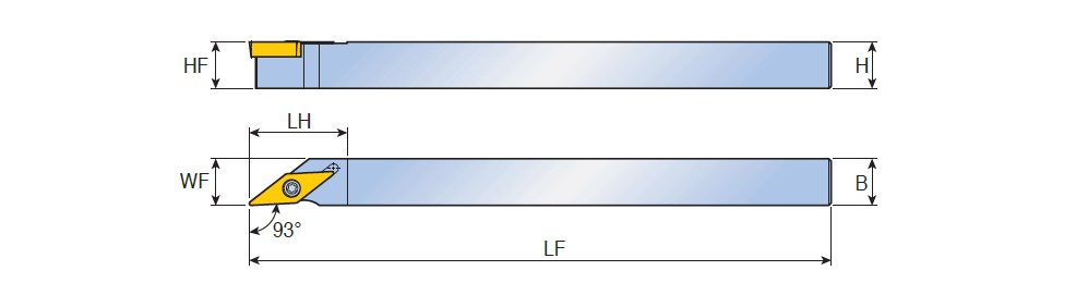 Screw type holders with 93° approach angle & & 35° VC.T positive inserts for Swiss turn