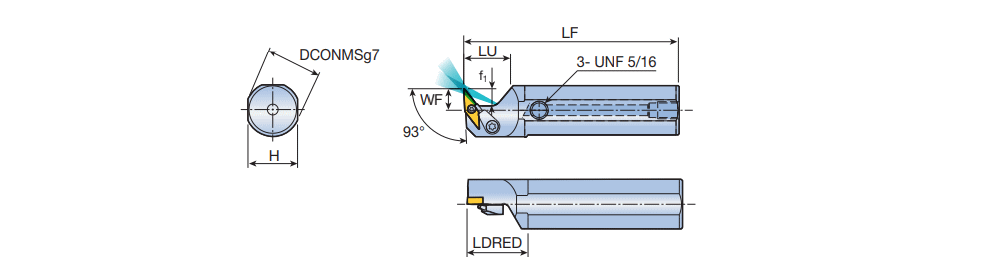 Screw type high pressure coolant sleeve holders with 93° approach angle & 35° VB.T positive inserts for Swiss type automatic lathes