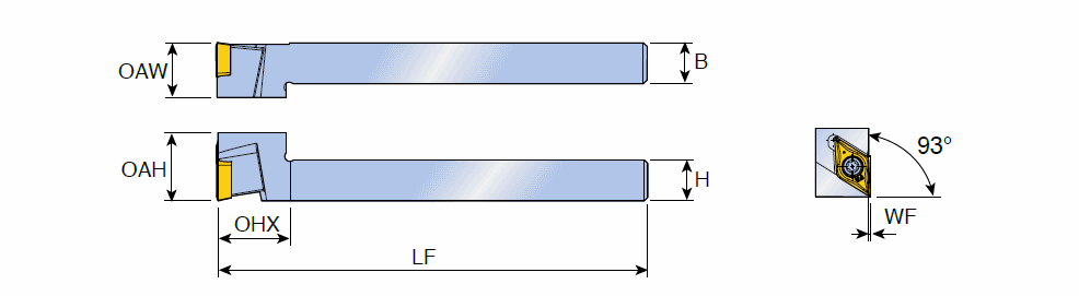 Screw type Y-axis holders with 93° approach angle & 55° DC.T positive inserts for Swiss type automatic lathes