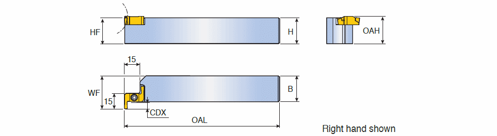 Perpendicular type external holders for shallow face grooving & face turning