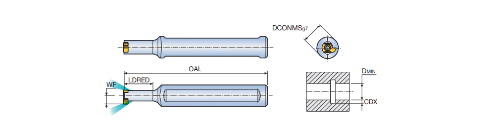 Small size boring bar with coolant holes for internal shallow grooving on small diameter Dmin=10mm with TMIS 8 inserts