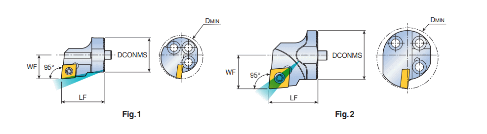 Exchangeable screw type boring heads with 80° CC.T positive inserts & 95° approach angle for anti-vibration deep boring machining