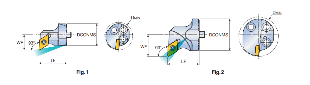Exchangeable screw type boring heads with 55° DC.T positive inserts & 93° approach angle for anti-vibration deep boring machining