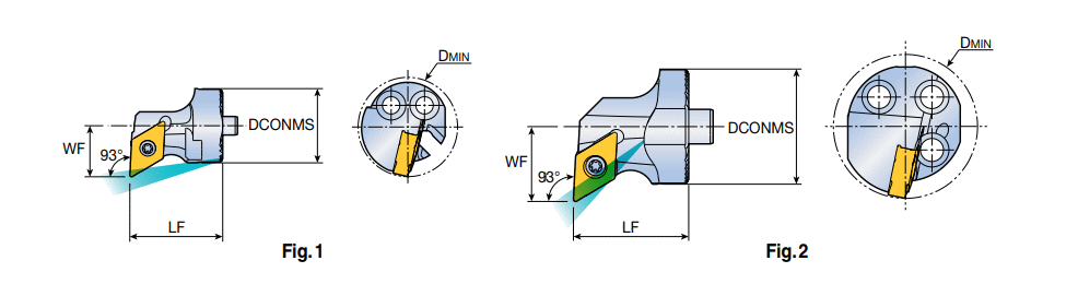 Exchangeable screw type RHINOTURN boring heads with 55° DN.. inserts & 93° approach angle for anti-vibration deep boring machining