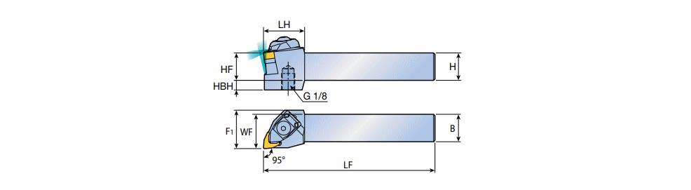 RHINOTURN T-holders for high pressure coolant with 95° approach angle & WN.X 0604 trigon inserts