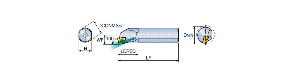 Screw type RHINOXTURN boring bars with internal coolant, 100° approach angle & 70° corner angle XNMG inserts