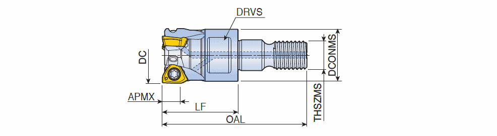 90° Modular end mills with T-FLEXTEC adaptation & high positive three helical cutting edges of 3PKT 04 inserts