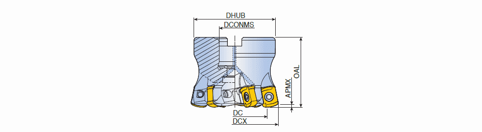 High feed mills with BLMP 11 inserts of 4 cutting edges in maximum depth of cut ap 2.0 mm